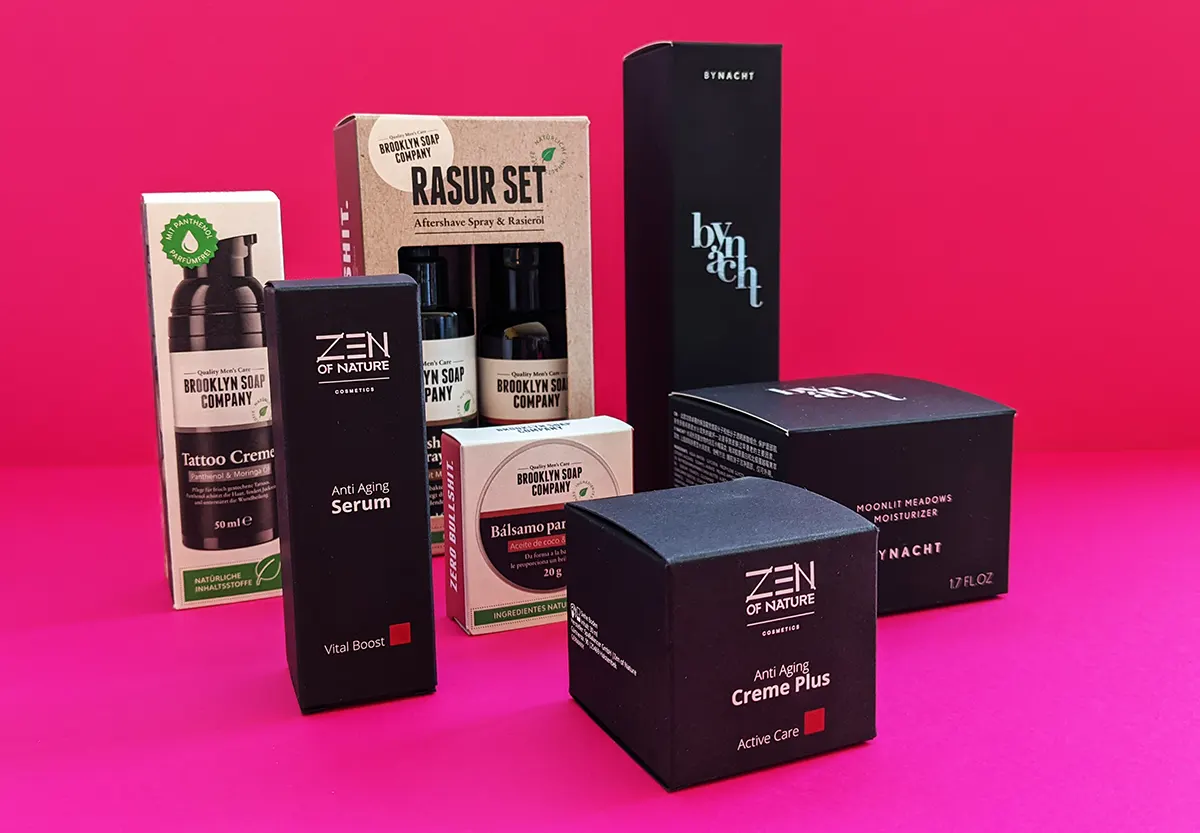 Kosmetikserien oder feine Foodartikel benötigen Faltschachteln in unterschiedlichen Ausführungen. Boxsys bietet alle Bodentechniken und Verschlussarten und garantiert eine hochwertige Verarbeitung. Auch Fensterstanzungen oder Inlays sind möglich. Für einfache Standards können sie unsere kostenlosen Vorlagen im Online-Konfigurator nutzen.