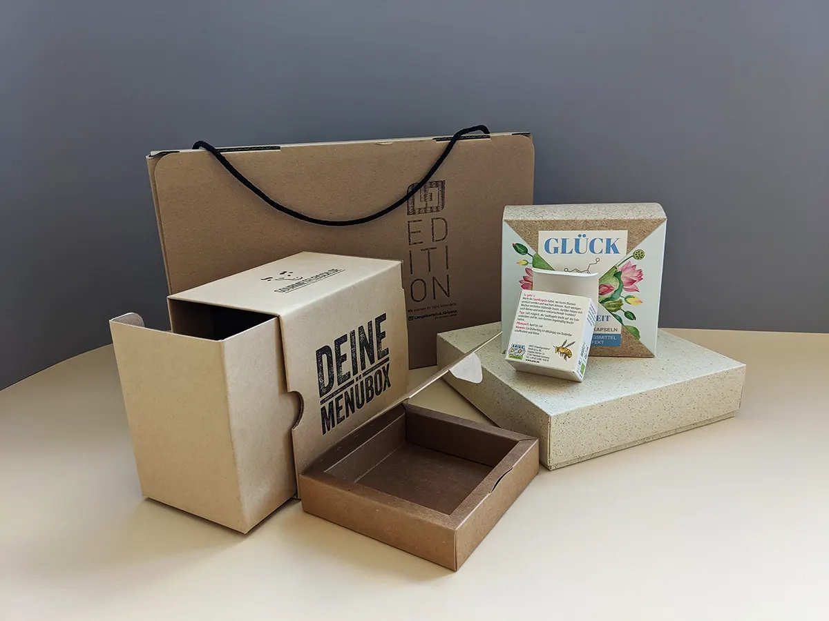 Vom bedruckten Versandkarton über die individuell gestalteten Faltschachtel bis zum Aufsteller ist alles dabei.